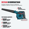 - Высокая скорость воздушного потока 156 м³/ч — обеспечивает эффективный обдув и быстрое удаление листвы, пыли и мелкого мусора.
