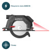 - Лазерный указатель – встроенный направляющий лазер помогает точно следовать линии разметки, обеспечивая максимальную точность реза. Это особенно полезно при работе с длинными заготовками и сложными раскроями, позволяя избежать отклонений без необходимости постоянного контроля с линейкой или направляющей.