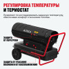- Высокая мощность обогрева 100 кВт — обеспечивает быстрый прогрев воздуха и стабильную температуру на площади до 3600 м³ при производительности 1300 м³/ч.