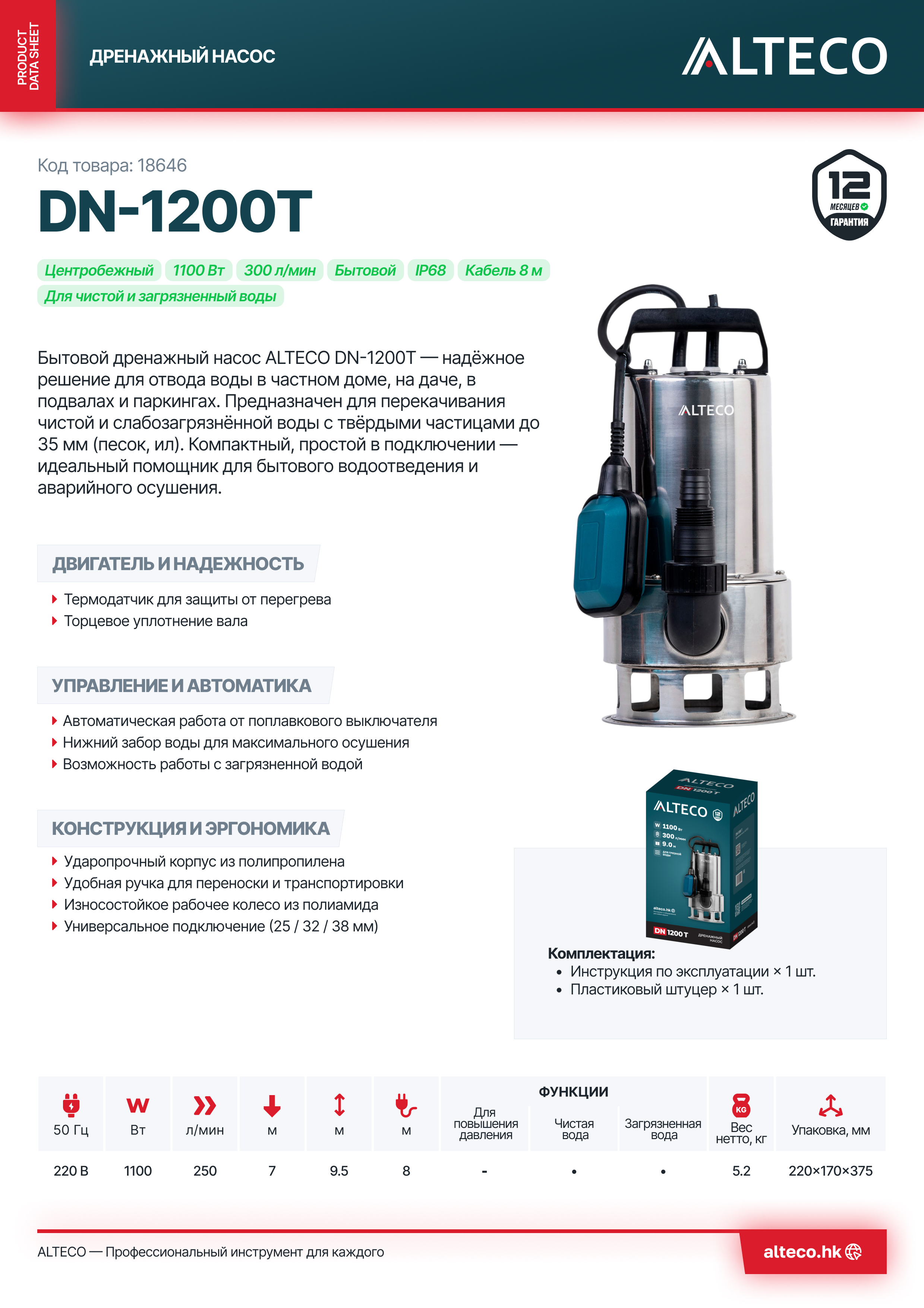 Особенности ALTECO DN-1200T