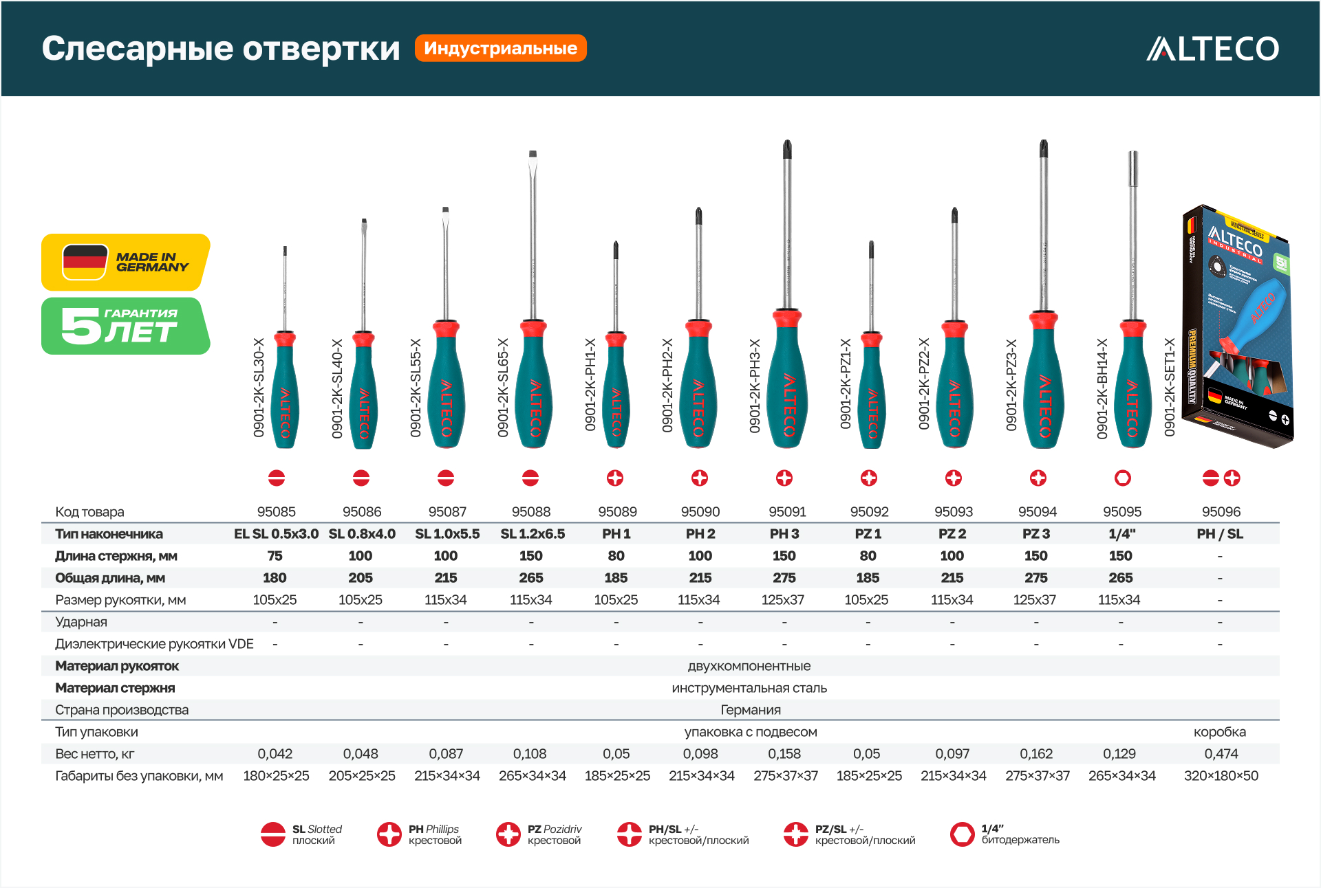 - Высокая прочность и долговечность — стержень из закаленной и отпущенной легированной инструментальной стали для интенсивной профессиональной эксплуатации.