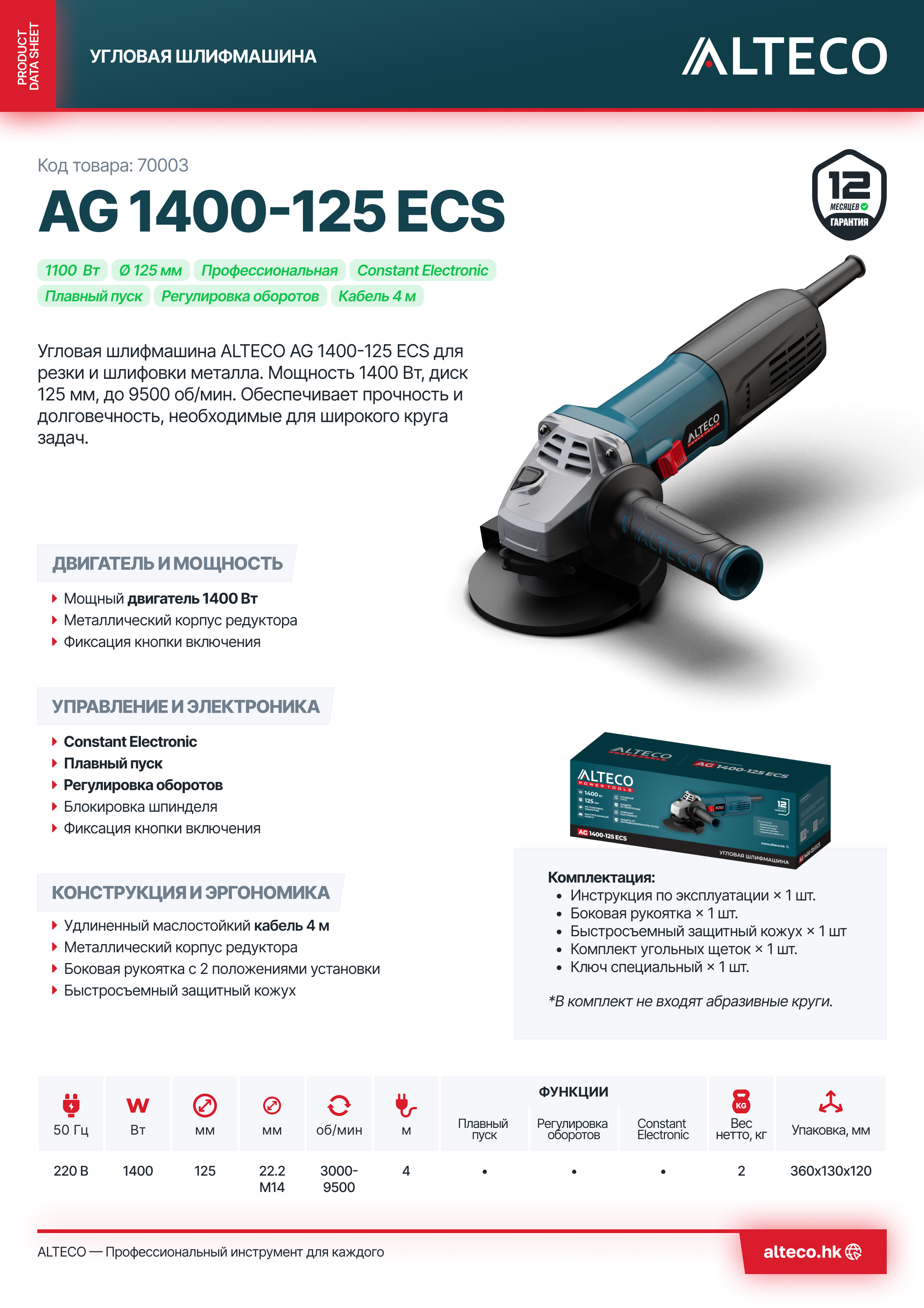 Преимущества ALTECO AG 1400-125 ECS