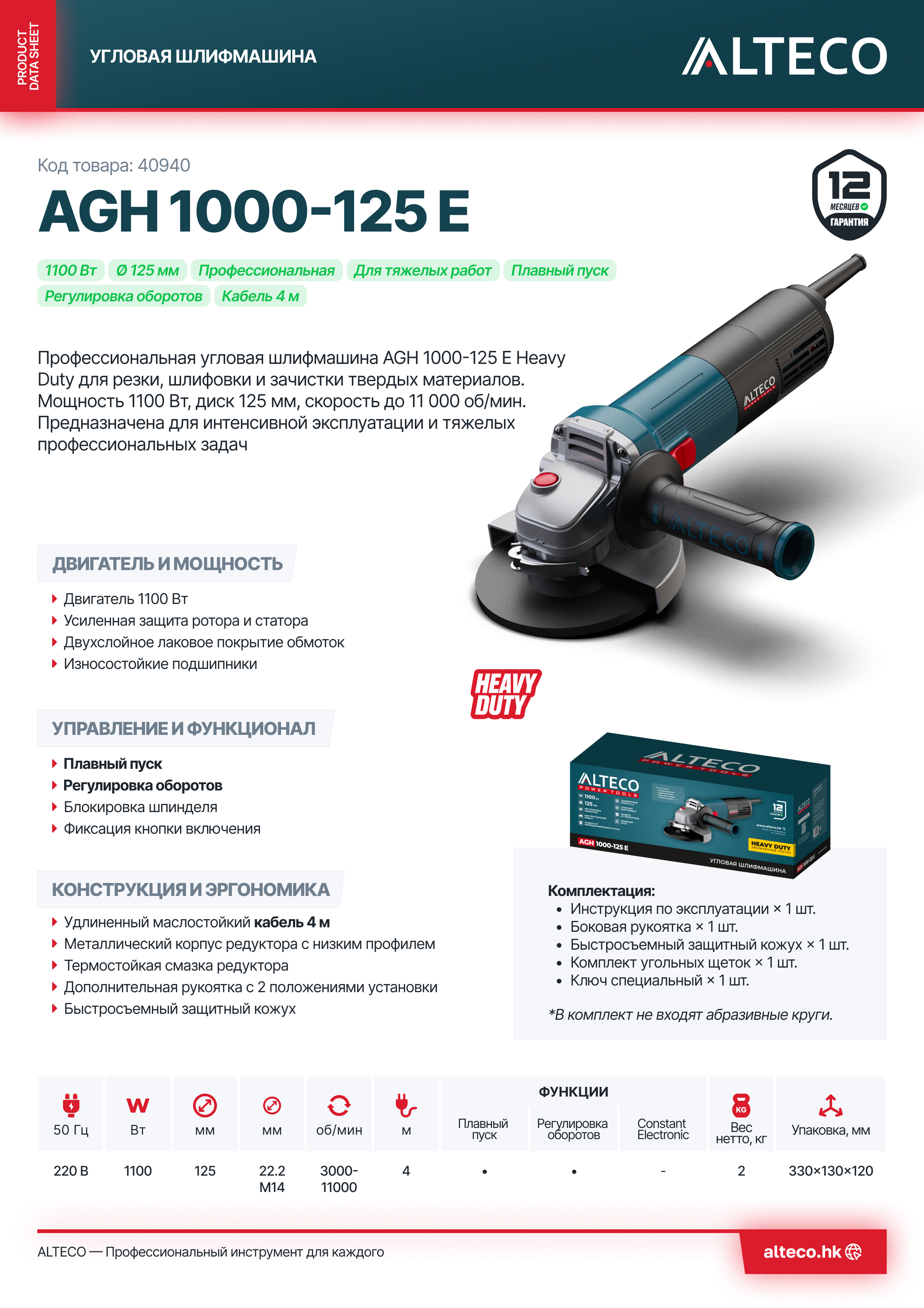 Преимущества ALTECO AGH 1000-125 E