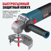 - Быстросъемный защитный кожух — надёжно защищает от искр и абразивных частиц, легко регулируется без инструмента.