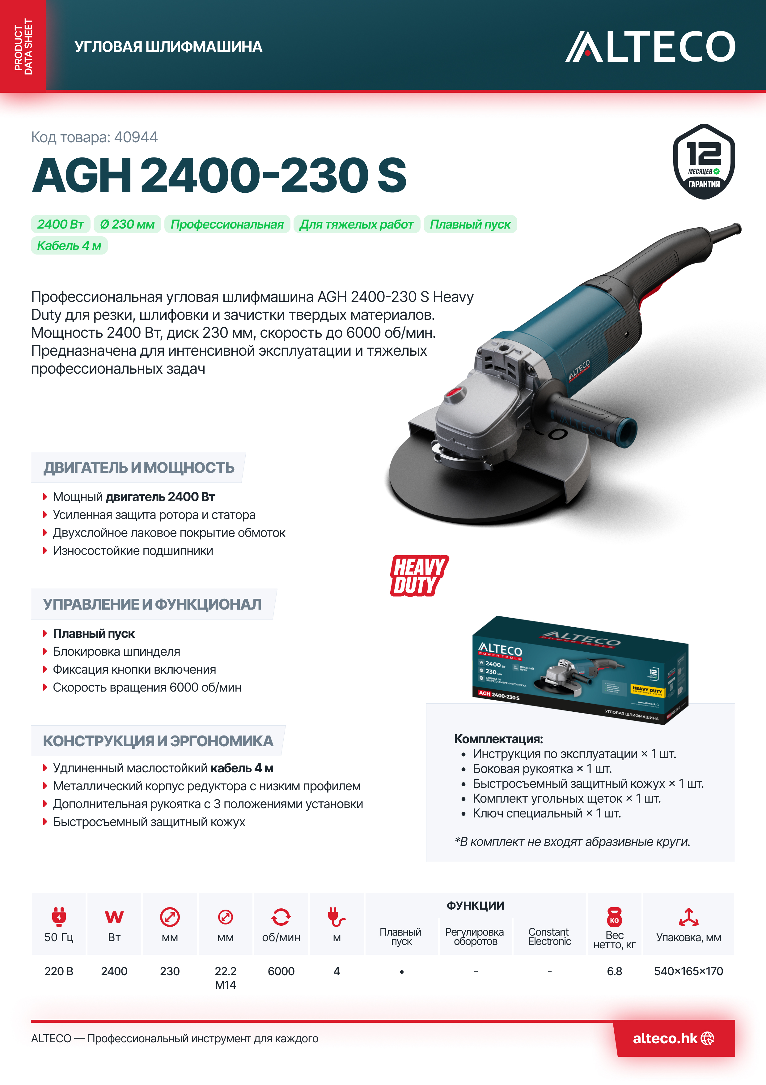 Преимущества ALTECO AGH 2400-230 S