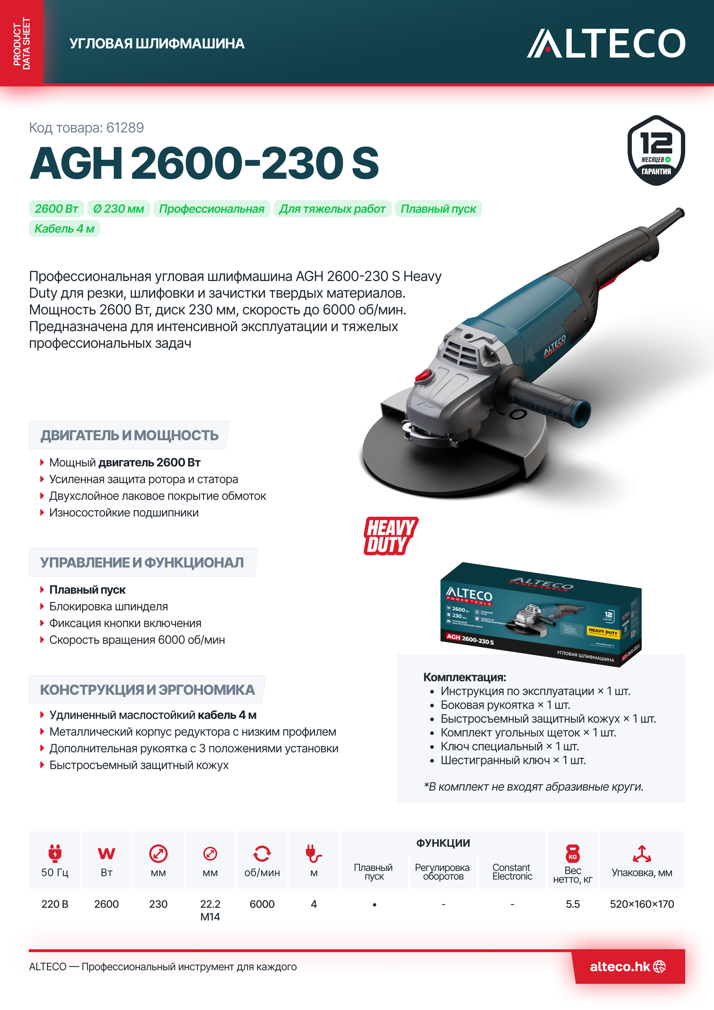 Преимущества ALTECO AGH 2600-230 S